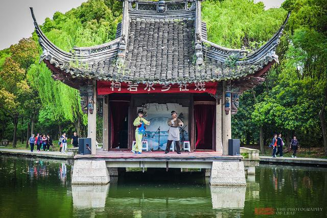 水中戏台正表演着绍兴当地戏曲。我站在戏台对面的湖岸边听了一会,旋律调调都非常的好听,只是听不懂在唱什么。
